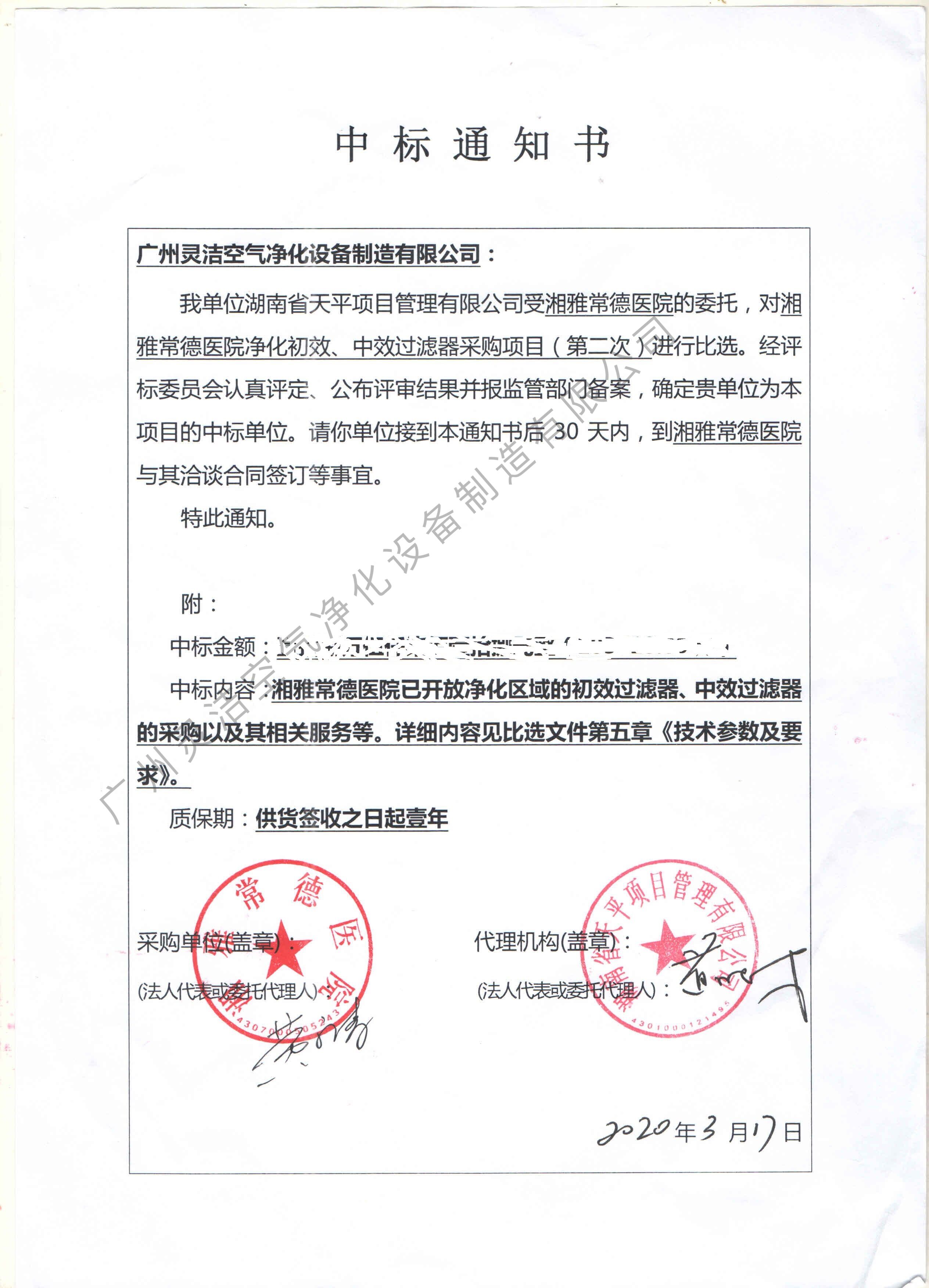 我司為湘雅常德醫(yī)院凈化區(qū)域初效過濾器、中效過濾器、高效過濾器更換安裝完畢