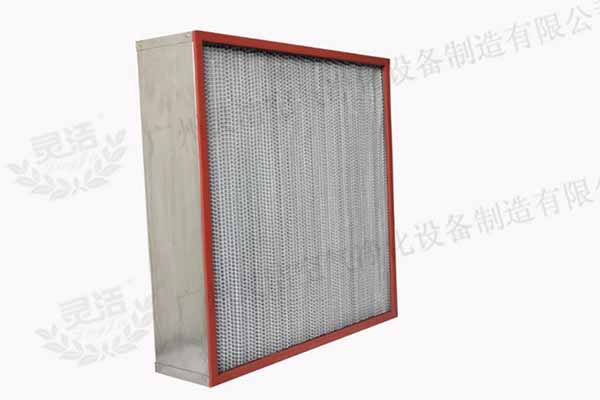 耐高溫高效過濾器用超細玻璃纖維作濾料,鋁箔作分隔物、耐高溫密封膠,不銹鋼或鍍鋅板外框,外觀美觀。